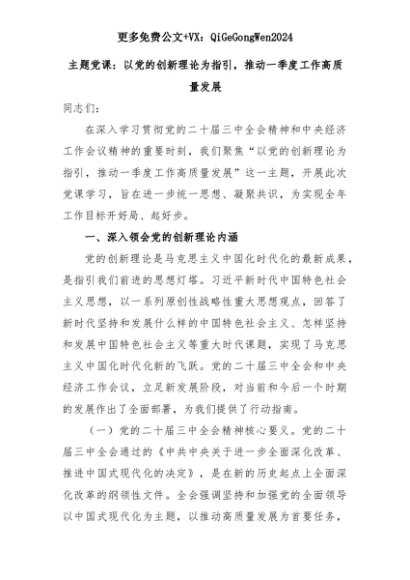 【七哥公文】2025年:主题党课:以党的创新理论为指引,推动一季度工作高质量发展+更多免费公文+VX:QiGeGongWen2024+更多免费公文+VX:QiGeGongWen2024
