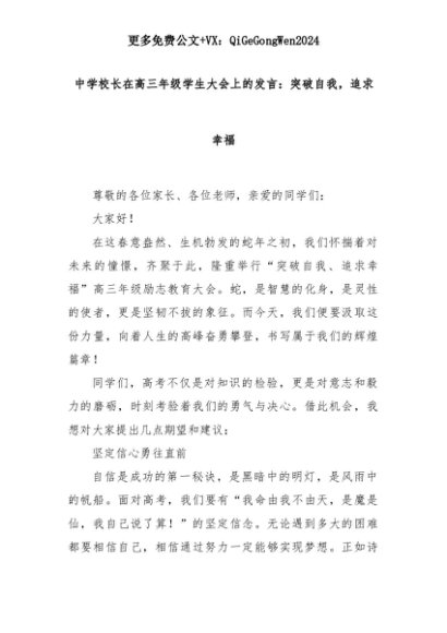 【七哥公文】2025年:中学校长在高三年级学生大会上的发言:突破自我,追求幸福+更多免费公文+VX:QiGeGongWen2024+更多免费公文+VX:QiGeGongWen2024