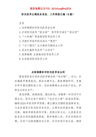 【七哥公文】2025年:(8篇)防汛抗旱主题政务信息、工作简报汇编+更多免费公文+VX:QiGeGongWen2024+更多免费公文+VX:QiGeGongWen2024