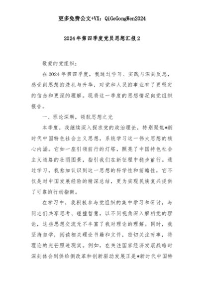 【七哥公文】2025年:2024年第四季度党员思想汇报2+更多免费公文+VX:QiGeGongWen2024+更多免费公文+VX:QiGeGongWen2024