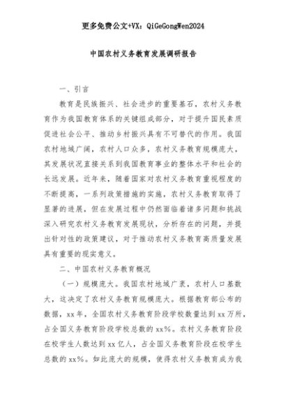 【七哥公文】2025年:中国农村义务教育发展调研报告+更多免费公文+VX:QiGeGongWen2024+更多免费公文+VX:QiGeGongWen2024