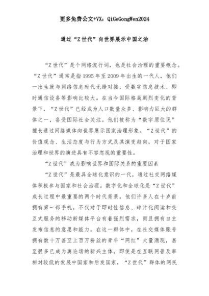 【七哥公文】2025年:通过“Z世代”向世界展示中国之治+更多免费公文+VX:QiGeGongWen2024+更多免费公文+VX:QiGeGongWen2024