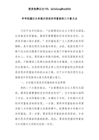 【七哥公文】2025年:牢牢把握以乡村振兴促进共同富裕的三个着力点+更多免费公文+VX:QiGeGongWen2024+更多免费公文+VX:QiGeGongWen2024