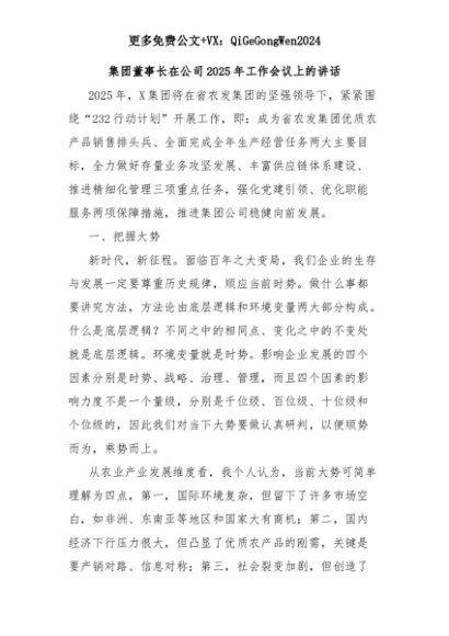 【七哥公文】2025年:集团董事长在公司2025年工作会议上的讲话+更多免费公文+VX:QiGeGongWen2024+更多免费公文+VX:QiGeGongWen2024