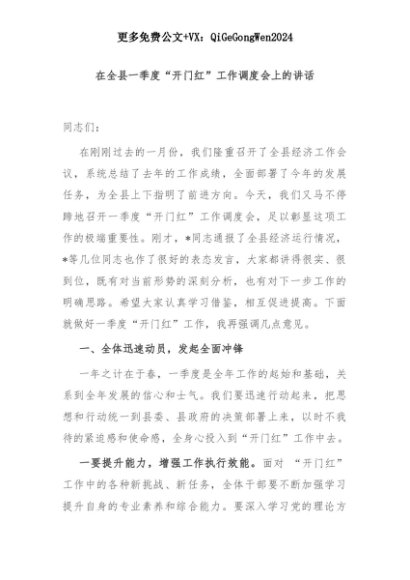【七哥公文】2025年:在全县一季度“开门红”工作调度会上的讲话+更多免费公文+VX:QiGeGongWen2024+更多免费公文+VX:QiGeGongWen2024