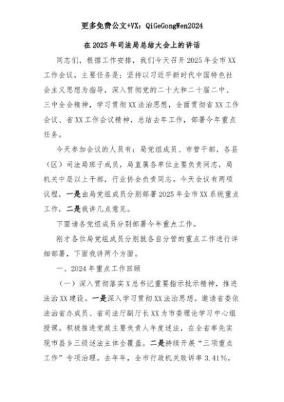 【七哥公文】2025年:在2025年司法局总结大会上的讲话+更多免费公文+VX:QiGeGongWen2024+更多免费公文+VX:QiGeGongWen2024