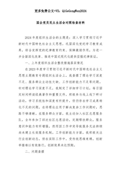 【七哥公文】2025年:国企党员民主生活会对照检查材料+更多免费公文+VX:QiGeGongWen2024+更多免费公文+VX:QiGeGongWen2024