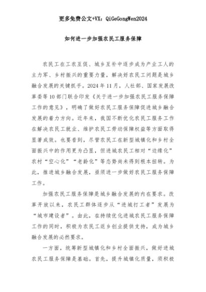 【七哥公文】2025年:如何进一步加强农民工服务保障+更多免费公文+VX:QiGeGongWen2024+更多免费公文+VX:QiGeGongWen2024