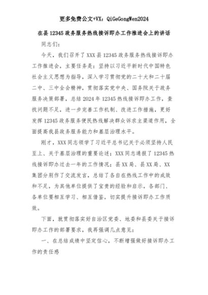 【七哥公文】2025年:在县12345政务服务热线接诉即办工作推进会上的讲话+更多免费公文+VX:QiGeGongWen2024+更多免费公文+VX:QiGeGongWen2024