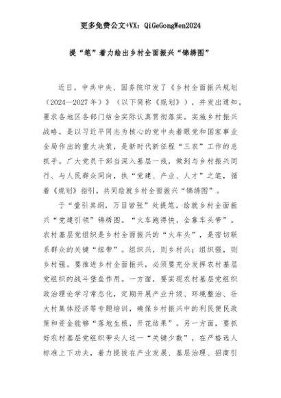 【七哥公文】2025年:提“笔”着力绘出乡村全面振兴“锦绣图”+更多免费公文+VX:QiGeGongWen2024+更多免费公文+VX:QiGeGongWen2024