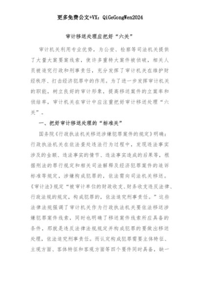 【七哥公文】2025年:审计移送处理应把好“六关”+更多免费公文+VX:QiGeGongWen2024+更多免费公文+VX:QiGeGongWen2024