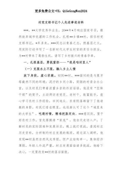 【七哥公文】2025年:村党支部书记个人先进事迹材料+更多免费公文+VX:QiGeGongWen2024+更多免费公文+VX:QiGeGongWen2024