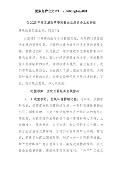 【七哥公文】2025年:在2025年省发展改革委民营企业座谈会上的讲话+更多免费公文+VX:QiGeGongWen2024+更多免费公文+VX:QiGeGongWen2024