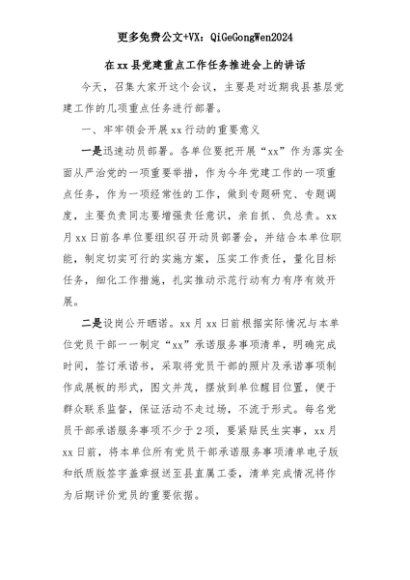 【七哥公文】2025年:在xx县党建重点工作任务推进会上的讲话+更多免费公文+VX:QiGeGongWen2024+更多免费公文+VX:QiGeGongWen2024