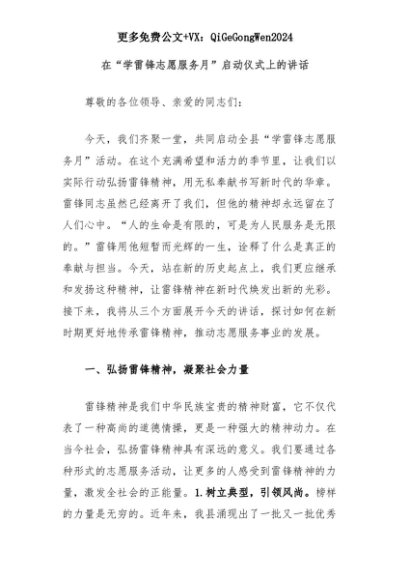 【七哥公文】2025年:在“学雷锋志愿服务月”启动仪式上的讲话+更多免费公文+VX:QiGeGongWen2024+更多免费公文+VX:QiGeGongWen2024