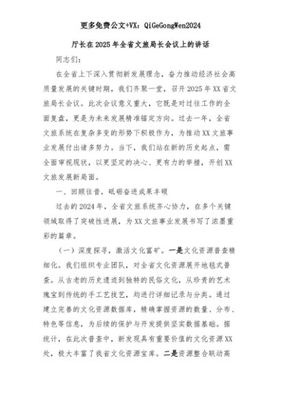 【七哥公文】2025年:厅长在2025年全省文旅局长会议上的讲话+更多免费公文+VX:QiGeGongWen2024+更多免费公文+VX:QiGeGongWen2024