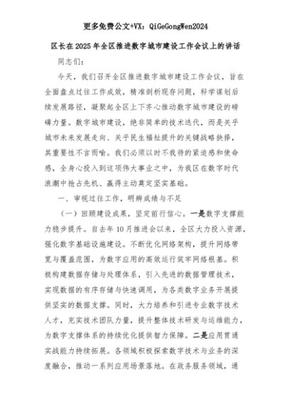 【七哥公文】2025年:区长在2025年全区推进数字城市建设工作会议上的讲话+更多免费公文+VX:QiGeGongWen2024+更多免费公文+VX:QiGeGongWen2024