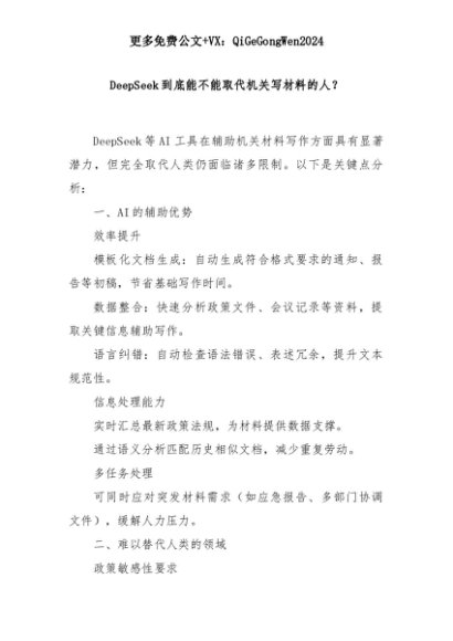 【七哥公文】2025年:DeepSeek到底能不能取代机关写材料的人?+更多免费公文+VX:QiGeGongWen2024+更多免费公文+VX:QiGeGongWen2024
