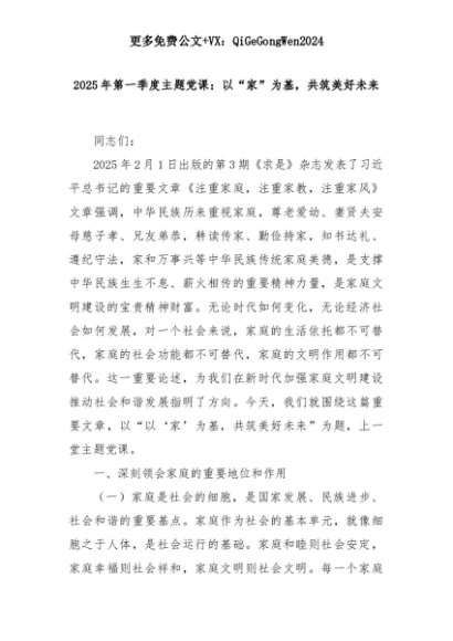 【七哥公文】2025年:2025年第一季度主题党课:以“家”为基,共筑美好未来+更多免费公文+VX:QiGeGongWen2024+更多免费公文+VX:QiGeGongWen2024