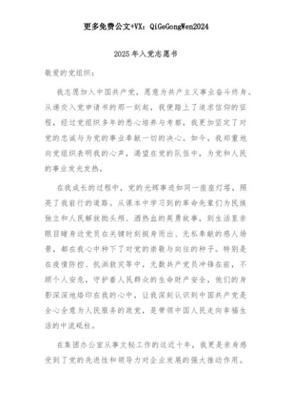 【七哥公文】2025年:2025年入党志愿书+更多免费公文+VX:QiGeGongWen2024+更多免费公文+VX:QiGeGongWen2024