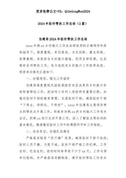 【七哥公文】2025年:(2篇)2024年驻村帮扶工作总结+更多免费公文+VX:QiGeGongWen2024+更多免费公文+VX:QiGeGongWen2024