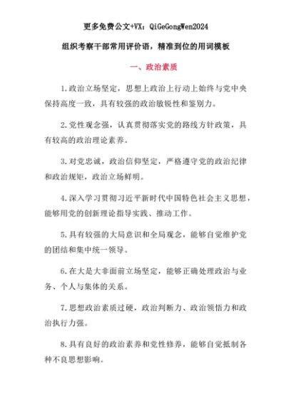 【七哥公文】2025年:组织考察干部常用评价语,精准到位的用词模板+更多免费公文+VX:QiGeGongWen2024+更多免费公文+VX:QiGeGongWen2024