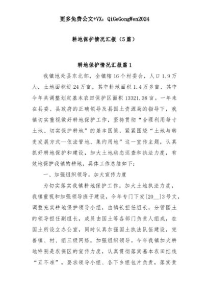 【七哥公文】2025年:(5篇)耕地保护情况汇报+更多免费公文+VX:QiGeGongWen2024+更多免费公文+VX:QiGeGongWen2024
