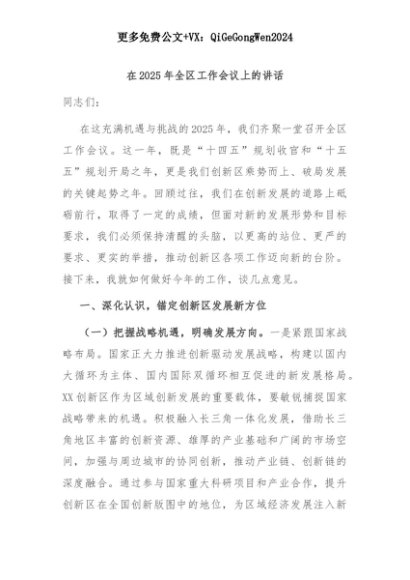 【七哥公文】2025年:在2025年全区工作会议上的讲话+更多免费公文+VX:QiGeGongWen2024+更多免费公文+VX:QiGeGongWen2024
