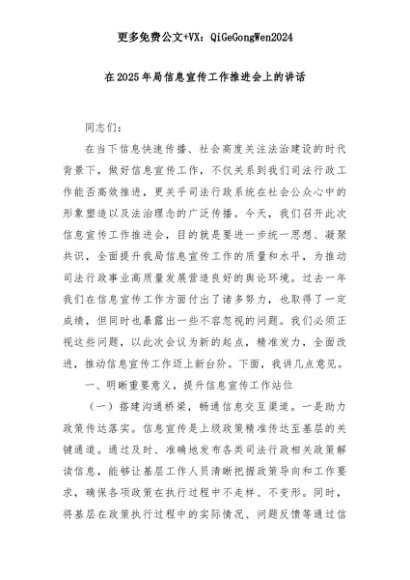 【七哥公文】2025年:在2025年局信息宣传工作推进会上的讲话+更多免费公文+VX:QiGeGongWen2024+更多免费公文+VX:QiGeGongWen2024