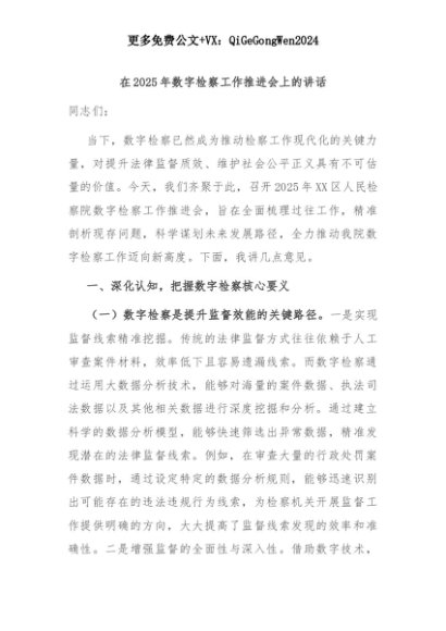 【七哥公文】2025年:在2025年数字检察工作推进会上的讲话+更多免费公文+VX:QiGeGongWen2024+更多免费公文+VX:QiGeGongWen2024