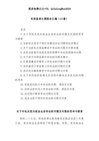 【七哥公文】2025年:(13篇)纪委监委主题报告汇编+更多免费公文+VX:QiGeGongWen2024+更多免费公文+VX:QiGeGongWen2024
