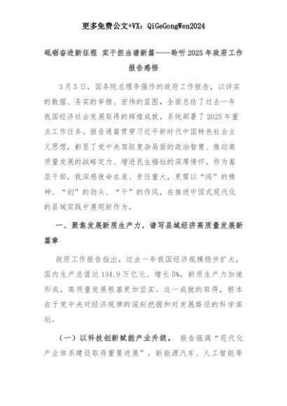 【七哥公文】2025年:砥砺奋进新征程 实干担当谱新篇——聆听2025年政府工作报告感悟+更多免费公文+VX:QiGeGongWen2024+更多免费公文+VX:QiGeGongWen2024