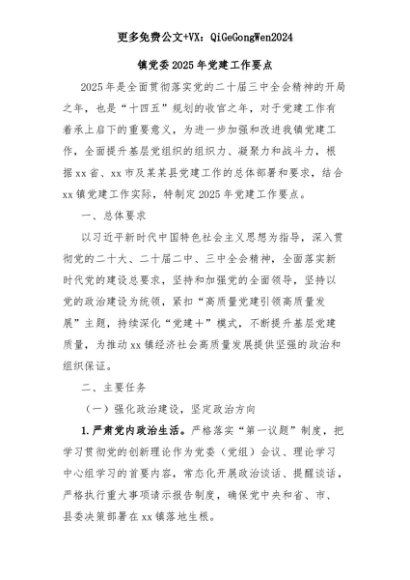 【七哥公文】2025年:镇党委2025年党建工作要点+更多免费公文+VX:QiGeGongWen2024+更多免费公文+VX:QiGeGongWen2024