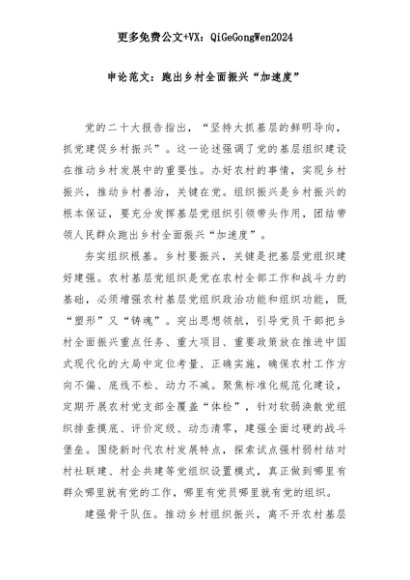 【七哥公文】2025年:申论范文:跑出乡村全面振兴“加速度”+更多免费公文+VX:QiGeGongWen2024+更多免费公文+VX:QiGeGongWen2024