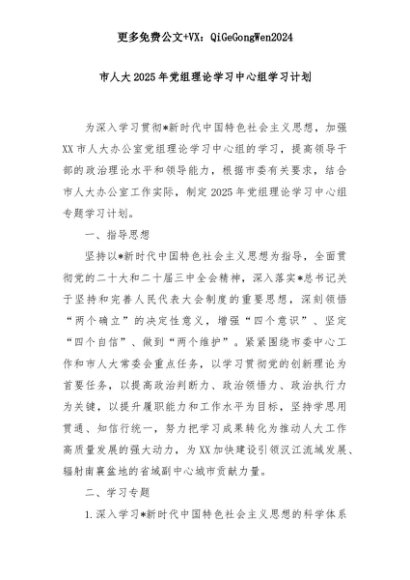 【七哥公文】2025年:市人大2025年党组理论学习中心组学习计划+更多免费公文+VX:QiGeGongWen2024+更多免费公文+VX:QiGeGongWen2024