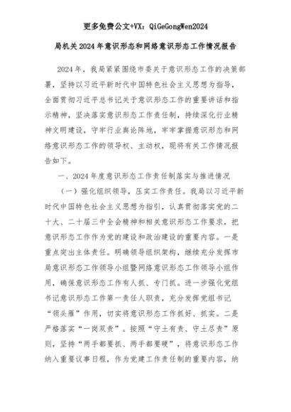 【七哥公文】2025年:局机关2024年意识形态和网络意识形态工作情况报告+更多免费公文+VX:QiGeGongWen2024+更多免费公文+VX:QiGeGongWen2024
