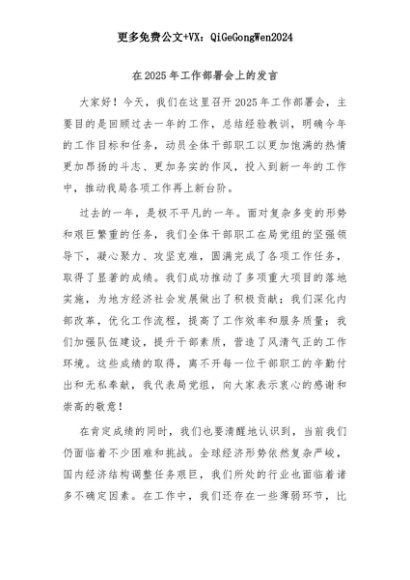 【七哥公文】2025年:在2025年工作部署会上的发言+更多免费公文+VX:QiGeGongWen2024+更多免费公文+VX:QiGeGongWen2024