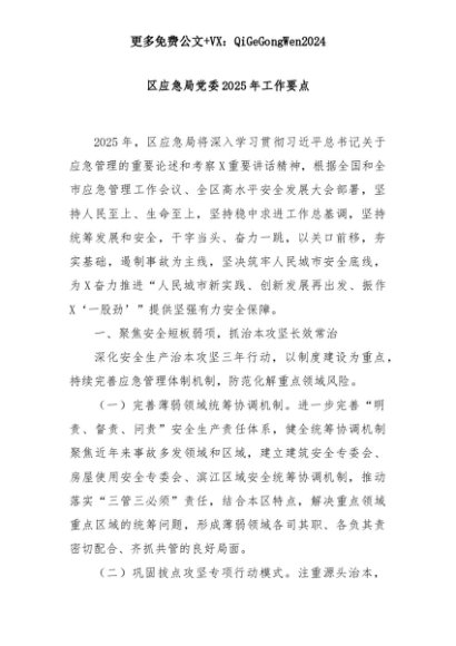 【七哥公文】2025年:区应急局党委2025年工作要点+更多免费公文+VX:QiGeGongWen2024+更多免费公文+VX:QiGeGongWen2024