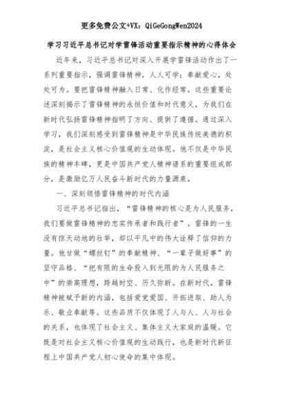 【七哥公文】2025年:学习习近平总书记对学雷锋活动重要指示精神的心得体会+更多免费公文+VX:QiGeGongWen2024+更多免费公文+VX:QiGeGongWen2024