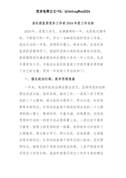 【七哥公文】2025年:县纪委监委党务工作者2024年度工作总结+更多免费公文+VX:QiGeGongWen2024+更多免费公文+VX:QiGeGongWen2024