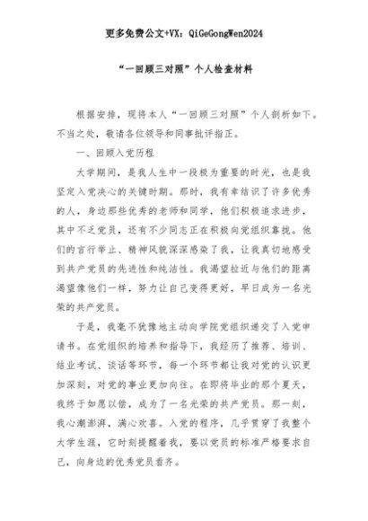【七哥公文】2025年:“一回顾三对照”个人检查材料+更多免费公文+VX:QiGeGongWen2024+更多免费公文+VX:QiGeGongWen2024