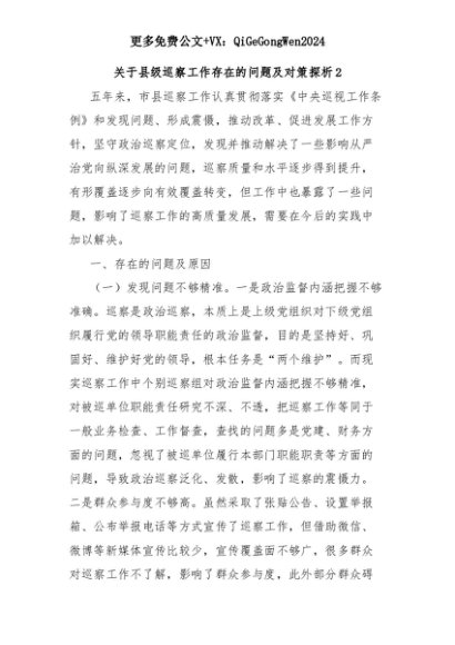 【七哥公文】2025年:关于县级巡察工作存在的问题及对策探析2+更多免费公文+VX:QiGeGongWen2024+更多免费公文+VX:QiGeGongWen2024