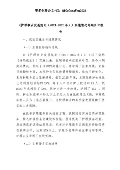 【七哥公文】2025年:《护理事业发展规划(2021-2025年)》实施情况终期自评报告(最新)+更多免费公文+VX:QiGeGongWen2024+更多免费公文+VX:QiGeGongWen2024