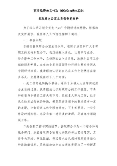 【七哥公文】2025年:县政府办公室主自我剖析材料+更多免费公文+VX:QiGeGongWen2024+更多免费公文+VX:QiGeGongWen2024
