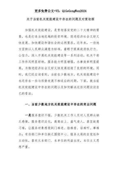 【七哥公文】2025年:关于当前机关效能建设中存在的问题及对策初探+更多免费公文+VX:QiGeGongWen2024+更多免费公文+VX:QiGeGongWen2024