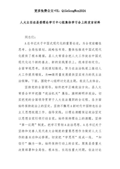 【七哥公文】2025年:人大主任在县委理论学习中心组集体学习会上的发言材料+更多免费公文+VX:QiGeGongWen2024+更多免费公文+VX:QiGeGongWen2024