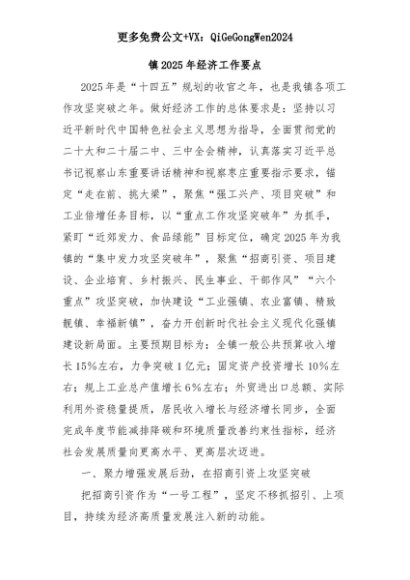 【七哥公文】2025年:镇2025年经济工作要点+更多免费公文+VX:QiGeGongWen2024+更多免费公文+VX:QiGeGongWen2024