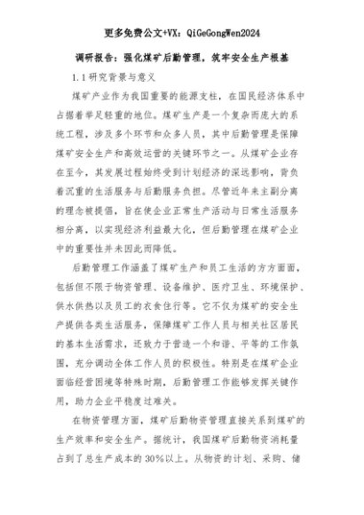 【七哥公文】2025年:调研报告:强化煤矿后勤管理,筑牢安全生产根基+更多免费公文+VX:QiGeGongWen2024+更多免费公文+VX:QiGeGongWen2024