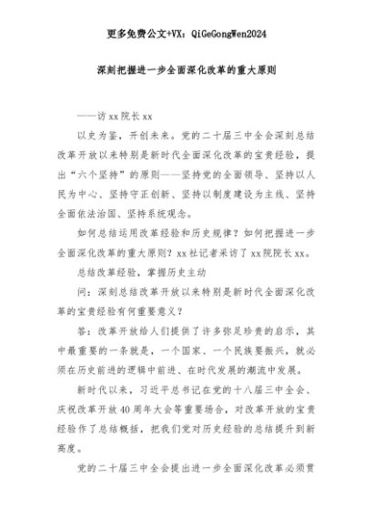 【七哥公文】2025年:深刻把握进一步全面深化改革的重大原则+更多免费公文+VX:QiGeGongWen2024+更多免费公文+VX:QiGeGongWen2024