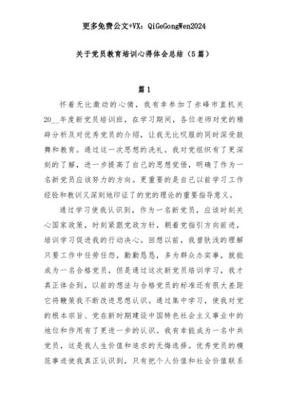 【七哥公文】2025年:(5篇)关于党员教育培训心得体会总结+更多免费公文+VX:QiGeGongWen2024+更多免费公文+VX:QiGeGongWen2024